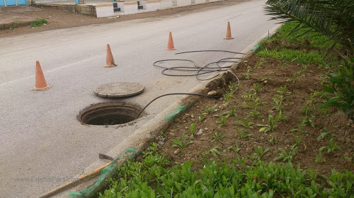 در ادامه مسیر فیبر نوری بوسیله کابل 144 یا 72 کر در زیر زمین مسیر خود را ادامه میدهید و در این مسیر حوضچه های مخابراتی و منهل های مخابرات برای دسترسی راحت تر در فواصل چنصد متری قرار می گیرد . در داخل حوضچه این فیبر برای انشعاب از باکس مفصل استفاده می کند . شما در زیر عکس حوضچه مخابراتی و مفصل را مشاهده می نمایید :